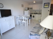 Idéal pour 1 couple et 2 enfants. Vous séjournerez au 1er étage avec ascenseur dans une belle résidence, au calme. Ce logement se compose d'un hall d'entrée desservant une salle d'eau avec un WC, un coin cuisine aménagé avec lave-linge et frigo à compartiment congélateur, une chambre avec accès terrasse et deux lits superposés, un séjour avec un canapé-lit BZ donnant accès à une grande terrasse avec vue sur l'arrière de la résidence coté ouest.