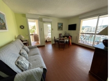 Au 3ème étage, avec ascenseur, votre logement, idéal pour 1 couple et 2 enfants, se compose d'un hall d'entrée desservant une cuisine indépendante toute équipée avec lave-vaisselle, une loggia attenante pour un petit déjeuner aux couleurs du Sud, un séjour climatisé avec un canapé, une TV un coin salle à manger, une terrasse où de votre salon de jardin exposé ouest vous pourrez admirer les bateaux, une chambre climatisée avec deux lits simples couplés ou pas, à votre convenance, et sa loggia où deux bains de soleil vous attendent pour un petit moment de détente, une seconde chambre climatisée avec un lit simple, un lit double et un accès à la terrasse principale, une salle d'eau, un wc indépendant et même un coin buanderie avec lave-linge et tout le matériel nécessaire à l'entretien de l'appartement.