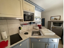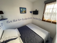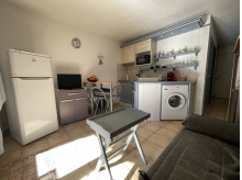 Vous séjournerez dans un appartement en rez de jardin, composé d'une entrée desservant une chambre avec un lit double et une fenêtre, une salle d'eau avec wc, un séjour climatisé avec un clic clac et une TV, un coin cuisine toute équipée avec frigo à compartiment congélateur, une loggia fermée côté Sud desservant un jardinet privé.