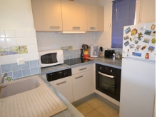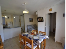 Vous séjournerez à deux pas des plages, au 2ème étage sans ascenseur, dans un appartement climatisé composé d'une entrée desservant une cuisine toute équipée avec fenêtre ouverte sur une salle à manger avec TV où se trouve un renfoncement avec un canapé-lit clic-clac, une chambre avec lit double et fenêtre, une salle d'eau avec wc et un balcon côté sud donnant sur l'avenue de la mer et offrant un petit aperçu mer.