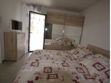 Composé d'une entrée desservant un couloir sur la droite donnant accès à la salle d'eau avec wc, un coin cuisine toute équipée avec lave-linge, lave-vaisselle et frigo à compartiment congélateur, une chambre avec lit en 160, sa télévision et son accès direct à la salle d'eau, un séjour avec clic-clac, ces derniers donnant tous deux accès à la terrasse et le jardinet.