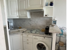 Vous séjournerez au 1er étage sans ascenseur, dans un 2 pièces en duplex, idéal pour 1 couple et 2 enfants. Composé au rez de chaussée d'un placard penderie, au 1er niveau une chambre avec 2 lits simples en 90x190 et une petite terrasse, une salle de bains avec WC, au 2nd niveau un séjour avec canapé rapido en 160 + 2 lits gigogne et une terrasse donnant face à la mer, un coin cuisine toute équipée avec lave-vaisselle, lave-linge et frigo à compartiment congélateur, au 3ème niveau un grand solarium permettant de se faire bronzer en toute tranquillité.