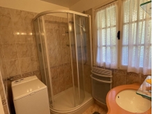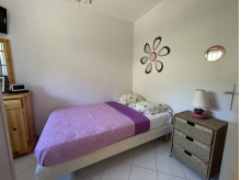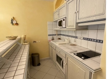 L'appartement se compose d'un couloir donnant sur un coin cuisine et salon ouvert avec un canapé lit, une terrasse en rez de jardin coté sud, un couloir desservant un WC indépendant avec fenêtre, une salle d'eau avec une douche et une machine à laver, une chambre avec un lit en 120 et une fenêtre.