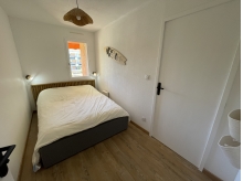 Il dispose d'un coin nuit indépendant avec lits superposés de 80x190 et placard/penderie, d'une chambre avec un lit double de 140x190 avec accès à la salle de bain (baignoire + wc).