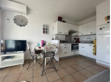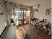 Situé au 2ème avec ascenseur, ce studio cabine est idéal pour 1 couple et 2 enfants, se compose d'un couloir avec un dressing aménagé, desservant une cabine avec fenêtre et des lits superposés, une salle d'eau avec WC, un coin cuisine équipée et moderne avec un grand frigo + compartiment congélateur, un lave-linge, un lave-vaisselle, un séjour climatisé avec un BZ en 160, une TV, un coin repas. Une loggia exposé est/ouest.