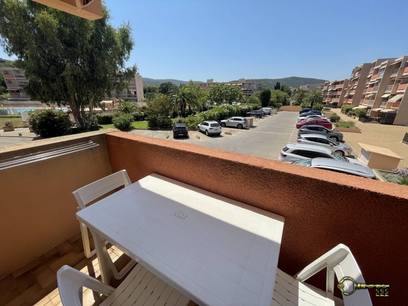 Au 1er étage avec ascenseur, vue sur l'intérieur résidence et aperçu piscine, côté Ouest, une terrasse s'offre à vous pour un petit-déjeuner provençal rythmé par le chant des cigales. Idéal pour 1 couple et 2 enfants.
