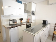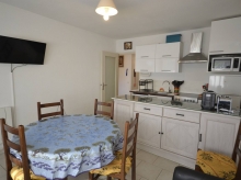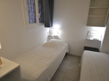 Idéal pour 6 personnes, l'appartement se compose d'un couloir desservant une petite chambre avec fenêtre et deux lits simple de 80, un WC indépendant, une salle d'eau avec cabine de douche, une autre chambre avec un lit en 140 et une TV donnant sur la terrasse, un coin cuisine avec frigo + compartiment congélateur, un séjour, salle à manger avec un canapé convertible en 160 + TV et climatisation, une terrasse toute équipée exposée Est.