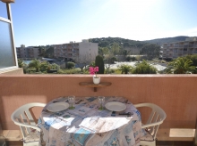 Vous profiterez de sa loggia qui offre une vue sur l'intérieur de la résidence, la piscine et les collines.