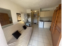 Il se compose d'une entrée desservant une salle d'eau, 1 WC indépendant, un coin cuisine, un séjour avec convertible et 2 lits superposés et TV.