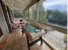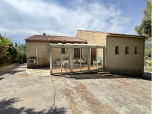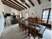 En partie principale, haut, se trouve le séjour salle à manger, cuisine, 3 chambres, salle de bains, wc, pièce d'entrée avec mezzanine et grande terrasse couverte.