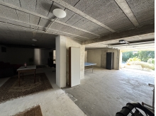 En partie basse grand garage de 90m², 1 wc et 1 salle de douche.